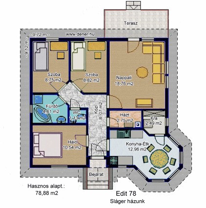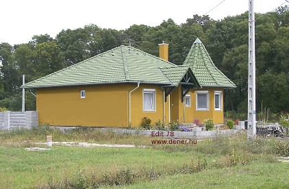 Ez a készház egy alaptípúsnak tekinthető, a tervek többféle változatban is készültek. Az itt levő készház hasznos alapterülete 78 négyzetméter, nagyon jól eltalált alaprajzi elrendezéssel és vonzó megjelenéssel. A házat megépítettük 71 négyzetméteres változattól egészen 103 négyzetméterig bezárólag. Vannak tükrözött változatok is, a torony is többféle megjelenéssel készült